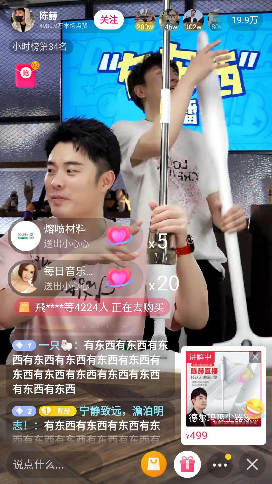 在宣布将在抖音长期直播带货后,陈赫得到了老罗的大力支持。除了此前在微博下留言鼓励外,这次老罗还说到做到,在陈赫的直播间送出了价值3000元的“嘉年华”(直播平台礼物)。陈赫的明星好友小沈阳、尹正、孙艺洲、李晨等人也纷纷用“火箭”表示了支持。