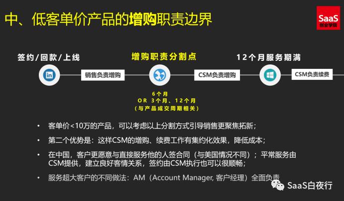 关于增购职责在时间轴上的划分,我的《SaaS企业管理课》中有一页PPT,我分享出来: