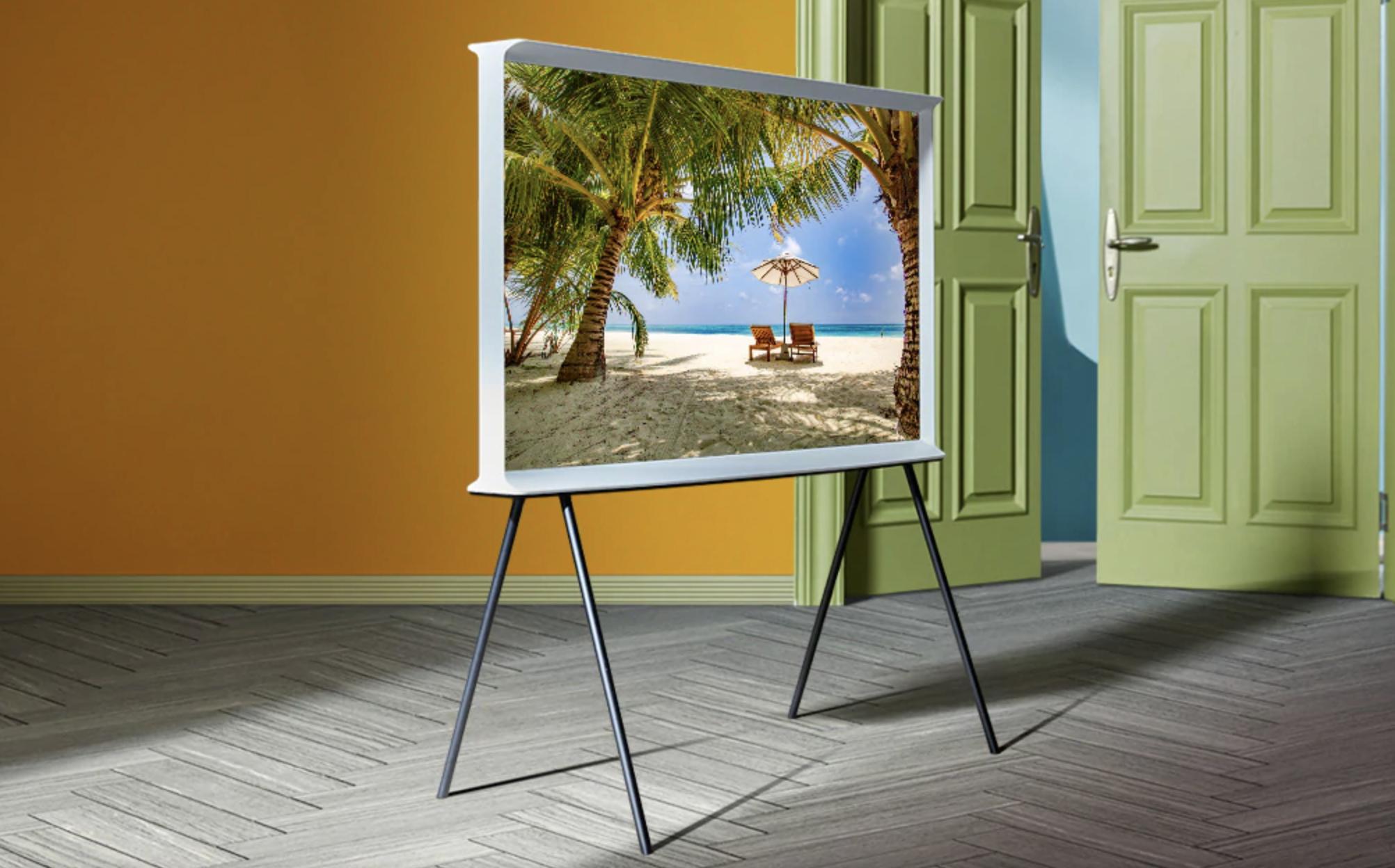 The Serif 画境电视的外观确实比较抓眼球。它由法国知名设计师罗南•布鲁克和埃尔文•布鲁克两兄弟设计,从侧面看呈现“I”造型,且电源线完全隐藏在支架中,整个电视配合“画架”支撑,看起来好似一幅画,在关机状态下可以展示壁纸。
