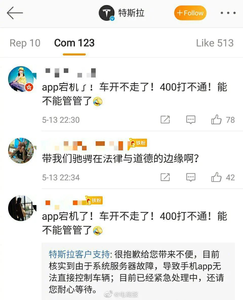 而文章开头提到的特斯拉APP和车机无法连接问题,特斯拉至今也没有给出满意的答复,只在相关微博下方派遣了客服进行常规回应,并没有公开的详细声明或者解决方案。