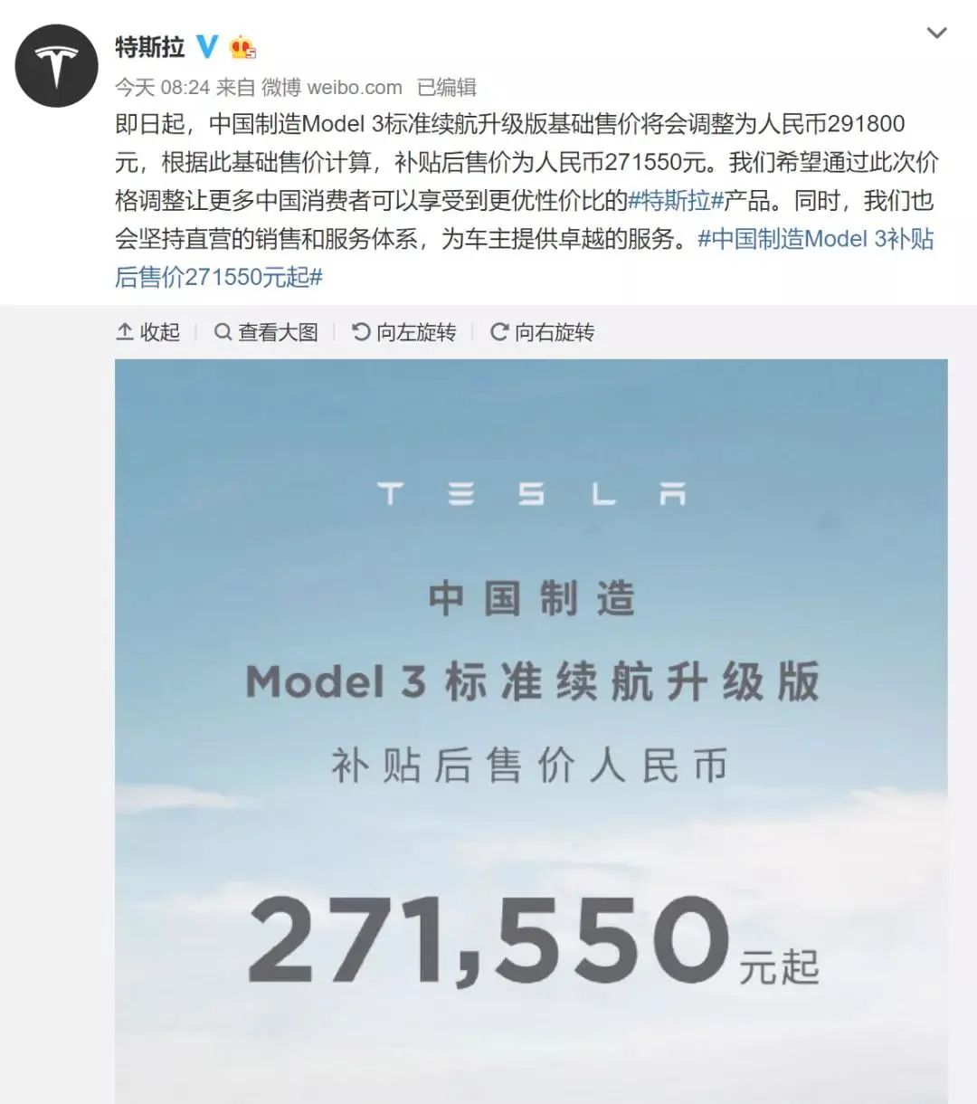 如果说“减配门”中特斯拉的糟糕公关抹去了原本光环的话,那么“降价门”就成为了四月销售量暴跌的根本原因。4月10日,特斯拉突然发布长续航版,让近期购买标准版的消费者大喊“血亏”,而在4月23日和5月1日,特斯拉又宣布调整标准版的售价,下降了足足2万元,让标准版的用户又被坑了一笔。