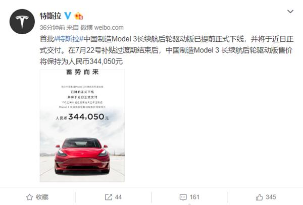在公告中特斯拉表示,长续航版未来的价格不变,但随着旧的新能源补贴政策在7月22日结束,长续航版应该要上调至少2万元的售价。特斯拉“价格不变”的政策就是在表示,哪怕在未来补贴结束后,长续航版的价格也不会上涨,特斯拉自己亲自补贴2万元维持原价,希望给消费者一个明确的价格预期。