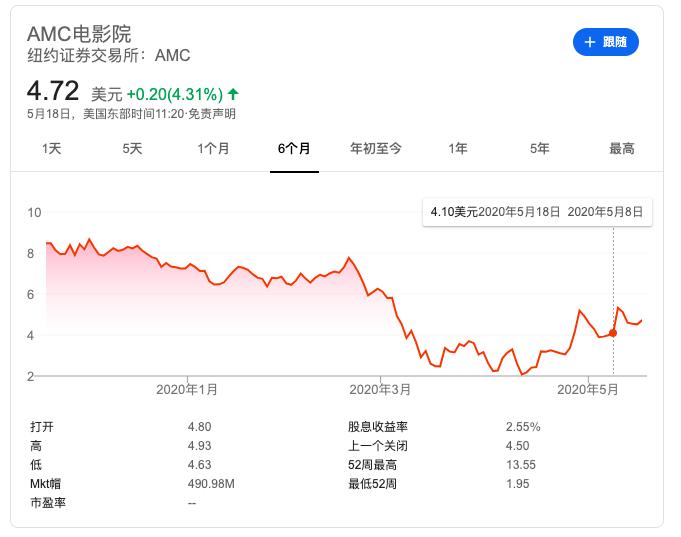 根据S&P全球市场情报公司(S&P Global Market Intelligence)数据,全球最大的电影院运营商AMC Entertainment (NYSE:AMC)的股价在4月份飙升了55.7% 。影院作为受COVID-19大流行打击最严重的行业之一,AMC的股价曾在3月份暴跌了50%,过山车式的股价走势屡上报端。