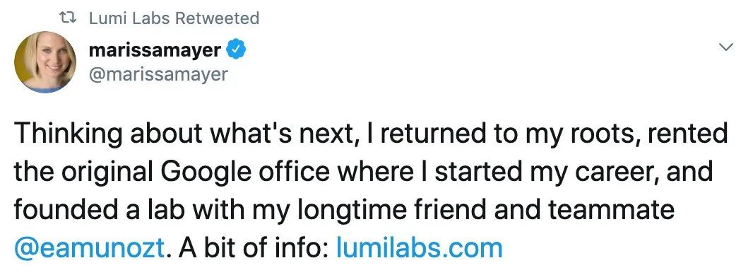 也许你没有听说过 Lumi Labs,但你一定知道它背后的创始人——谷歌的第 20 号员工、前雅虎 CEO,玛丽莎·梅耶尔(Marissa Mayer)。
