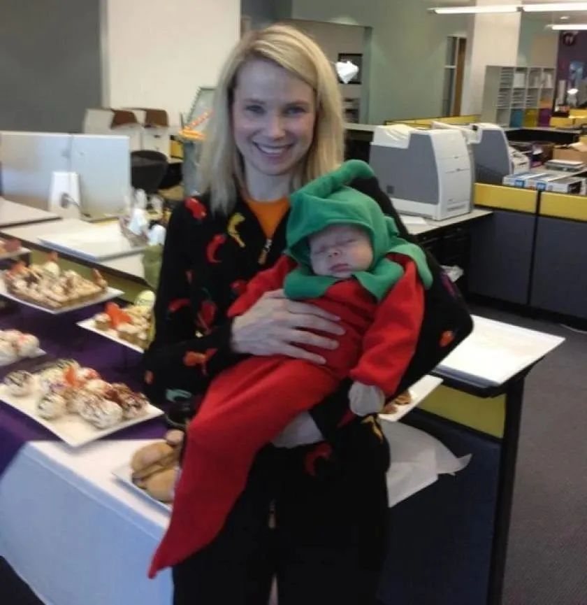 加入雅虎后,她一如既往地「拼」,先后生下了一个儿子和一对双胞胎女儿,但是却分别只休了两个星期和 5 天的产假。