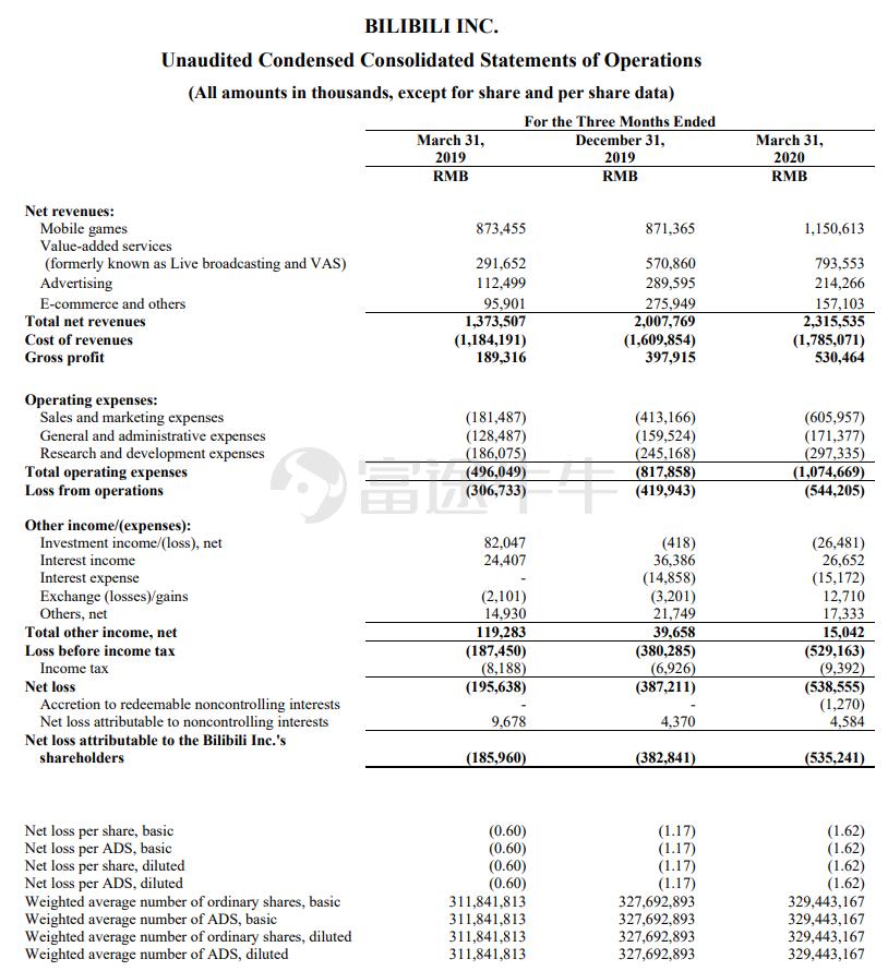 哔哩哔哩第一季度营收23.2亿元,同比增长69%