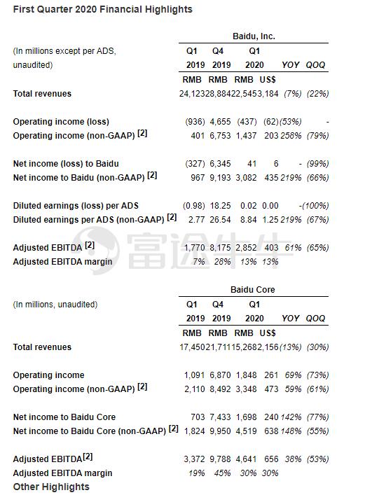 一季度百度的核心业务利润也翻倍增长。当季非GAAP下核心业务净利润为45亿元,同比增长148%,当季调整后EBITDA46.4亿元,同比增长38%,经调整EBITDA利润率为30%,同比上涨11个百分点。