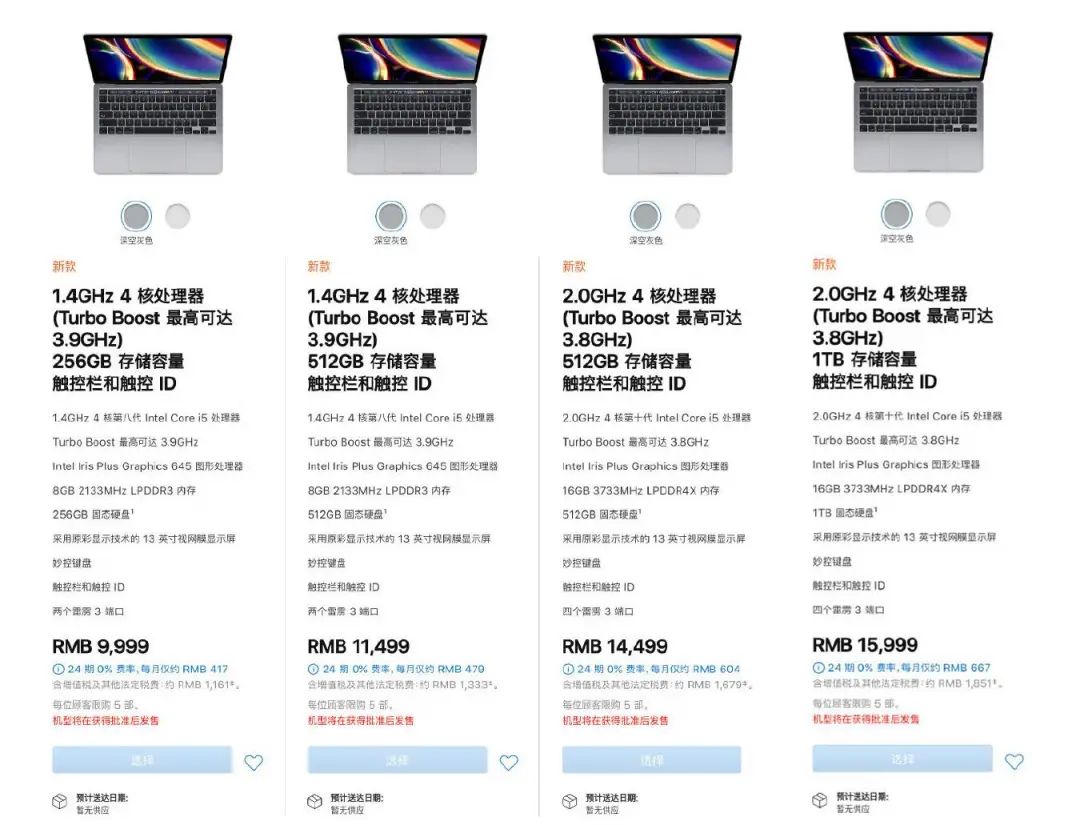 不提键盘和 Touch Bar 的变动,只看核心配置部分,八代酷睿升级到十代酷睿,8GB LPDDR3 内存升级到 16GB LPDDR4X 内存,256GB SSD 升级到 512GB SSD。