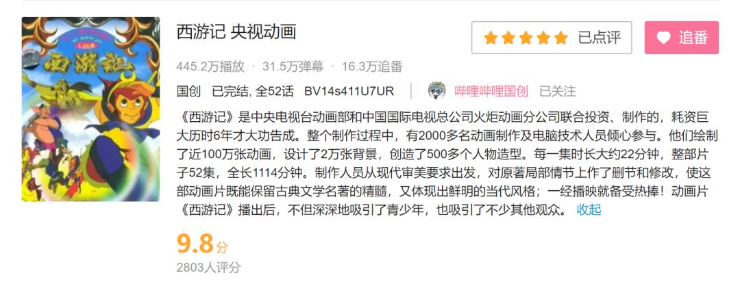 B站还在持续收集陪伴80、90后成长的经典国漫。《葫芦兄弟》《舒克与贝塔》《哪吒传奇》《西游记》《黑猫警长》《海尔兄弟》《喜羊羊与灰太狼》...在“看我发现了什么”的弹幕中,你会发现,原来这么多人和你在共享同一个童年。