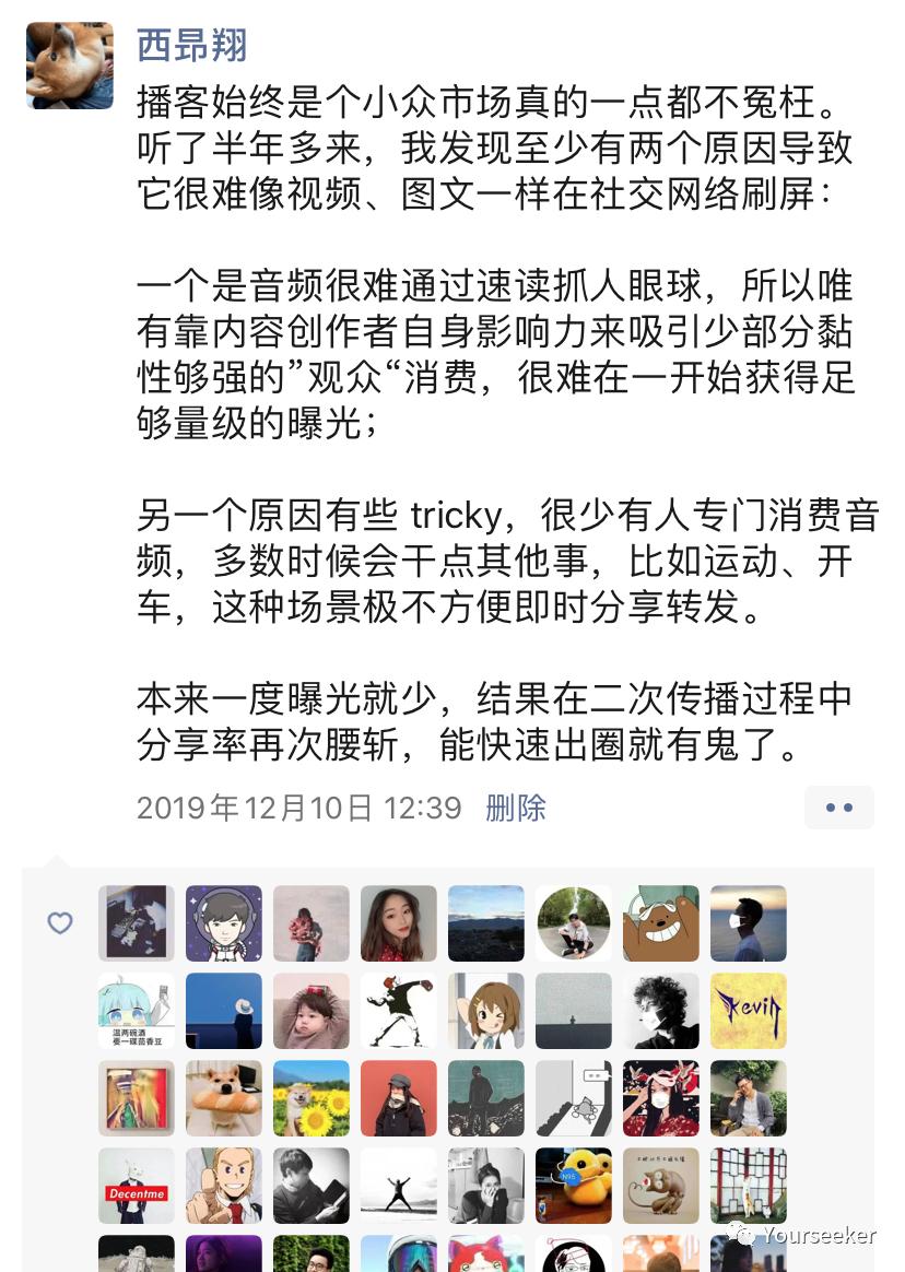 当然,此前并非没有产品尝试过把播客扩展为一种社交方式,但它们基本都没成功。