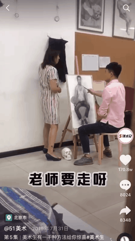 举个例子,美术教育账号 @51美术,视频内容都是学生和老师的上课日常。