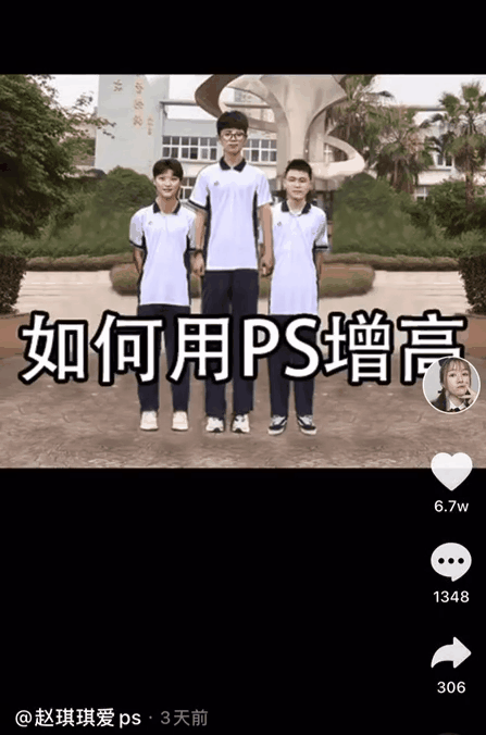 说起表演风格,最令我印象深刻的是在抖音上教 PS 的@赵琪琪爱PS,跟别的正经播主不同,赵琪琪的视频都是用 rap 来教 PS 的,配合魔性的音乐,非常搞笑。