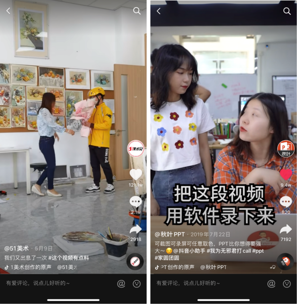 例如,我们前面提到的 @秋叶PPT,就是直接在他们办公室拍摄的;而@51美术 则直接在教室拍摄。
