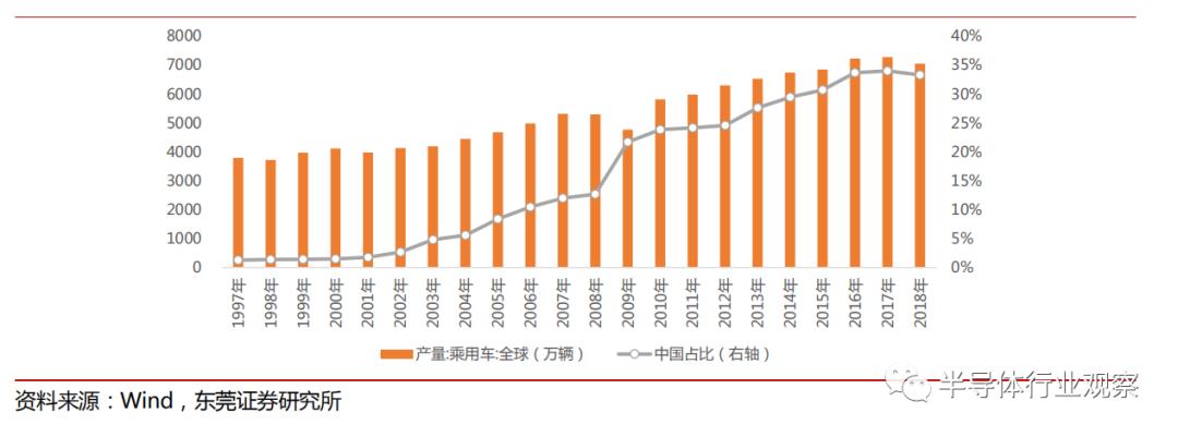 2018 年中国占据全球乘用车产量的33%(图源:东莞证券研究所)