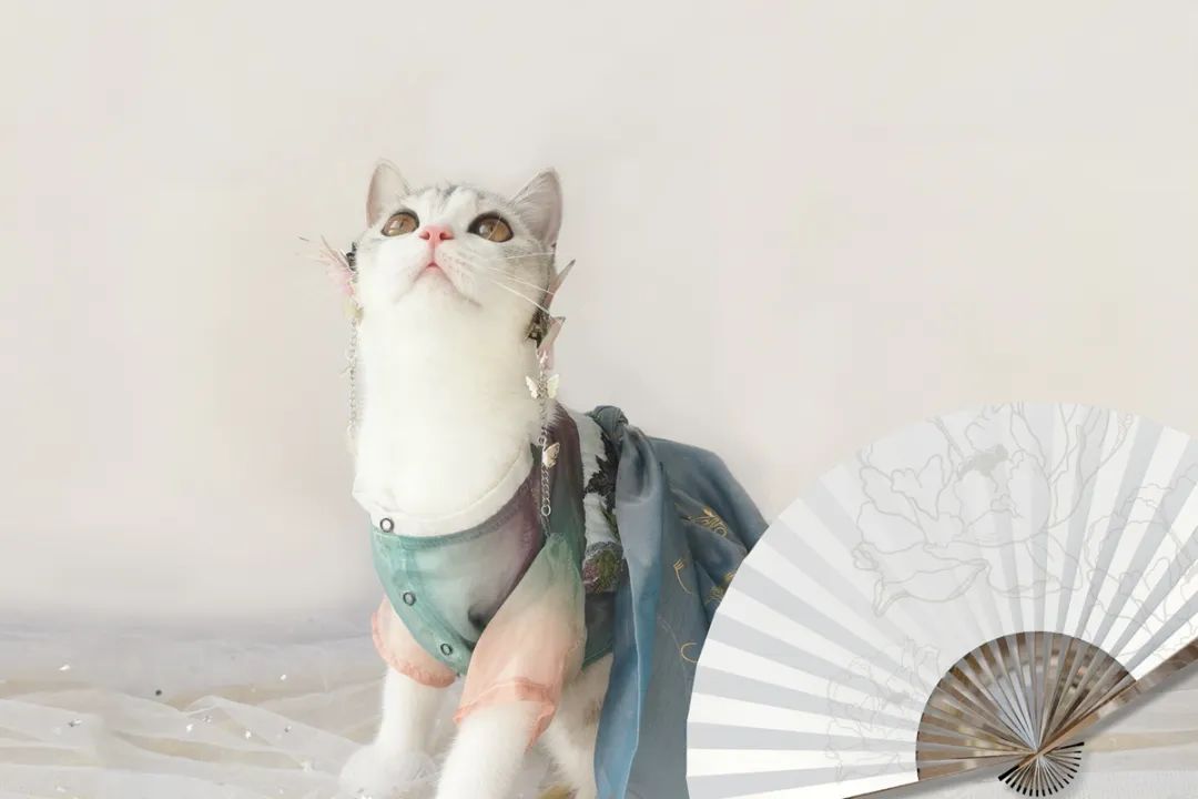 淘宝上就有一家名叫“春风大小乔”的原创宠物馆,主要出售以宠物为主角的原创古风服饰。店主吴秋乔是个90后,从小喜欢给娃娃做衣服,工作后又养了只猫,于是萌发了给猫设计服装的念头。