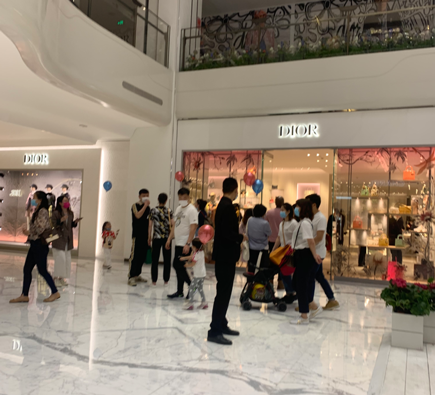 Dior门口排队的同龄小姐姐,已经在迫不及待地向橱窗里面眺望最新一季的老花包;Cartier门口是拥抱着等待选购戒指的年轻情侣。欣欣逛了一圈发现,无一例外,商场一层的每个收银台也都在排队。还真是应了此前疫情间GQ对SKP的观察结果:有人失业,富豪却依旧挥金如土。