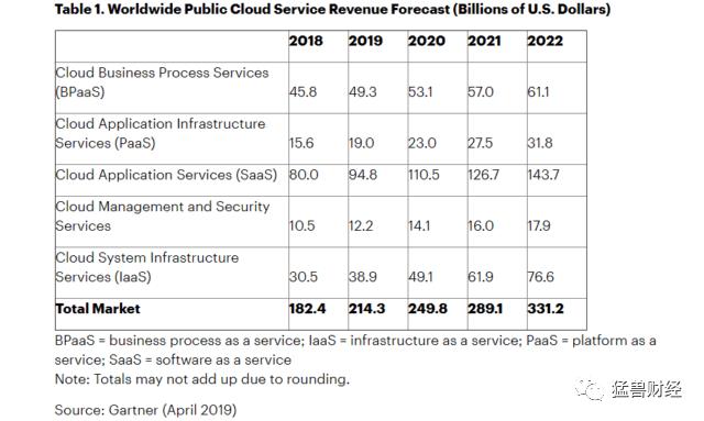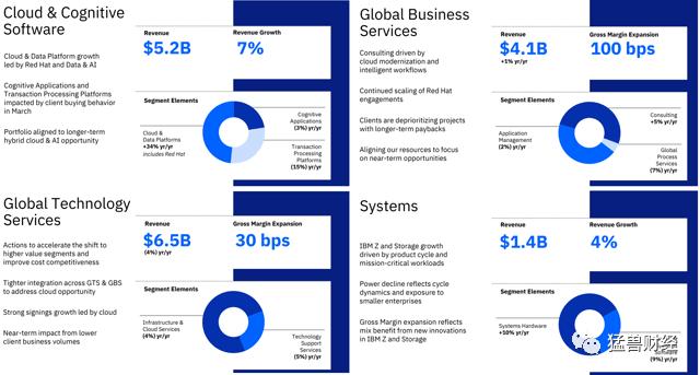 通过Red Hat的收购,IBM将自己定位于混合云,并试图为所有服务模型(IaaS、PaaS、SaaS)提供服务。这一细分市场的预期年增长率为18%。