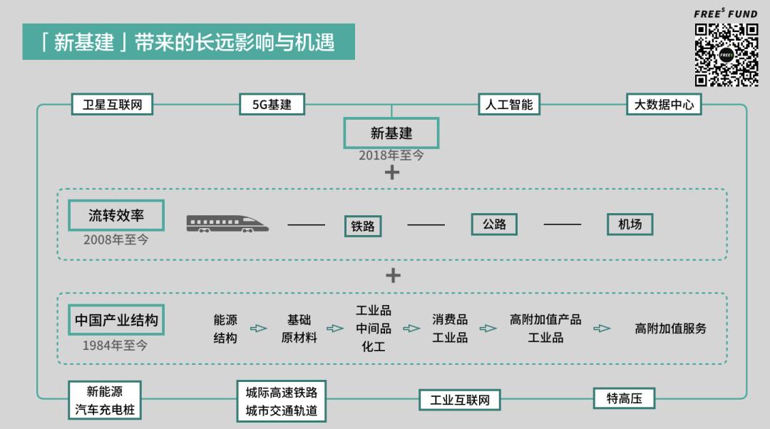 所以,把新基建的一个特定方向,指向产业链条 / 流通环节的相关环节,两者的连线基本上都将是未来十年里比较大的机会。