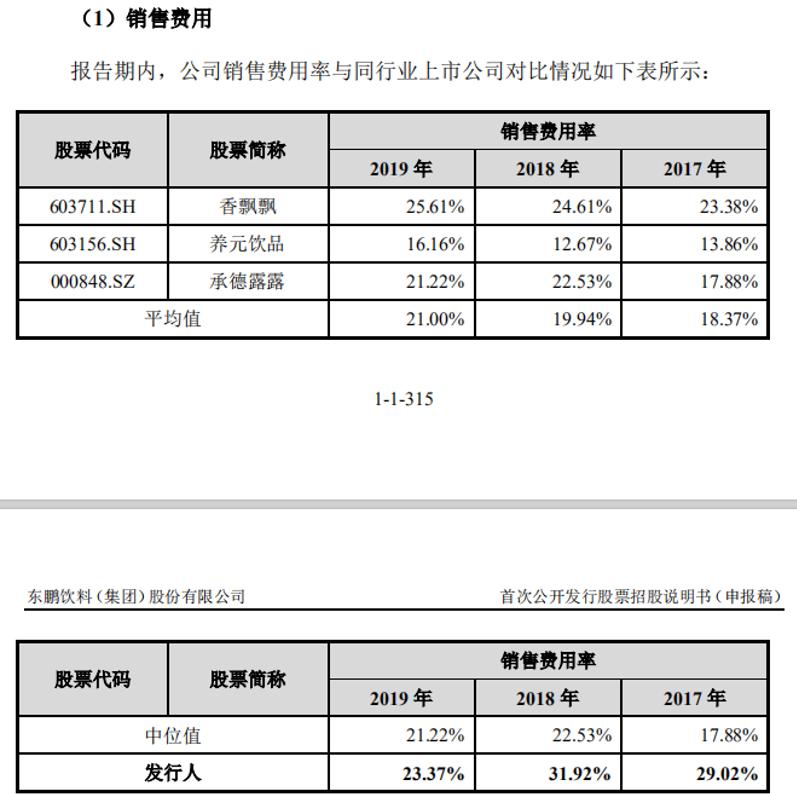 大力营销使得公司销售费用占比居高不下。报告期内,东鹏饮料销售费用分别为8.25亿、9.69亿、9.84亿,销售费用率达到29.02%、31.92%及23.37%,同期的同行业上市公司均值分别为18.37%、19.94%、21%,公司始终高于均值。对此问题,我们尝试拨打东鹏饮料电话进行询问,电话始终无人接听。