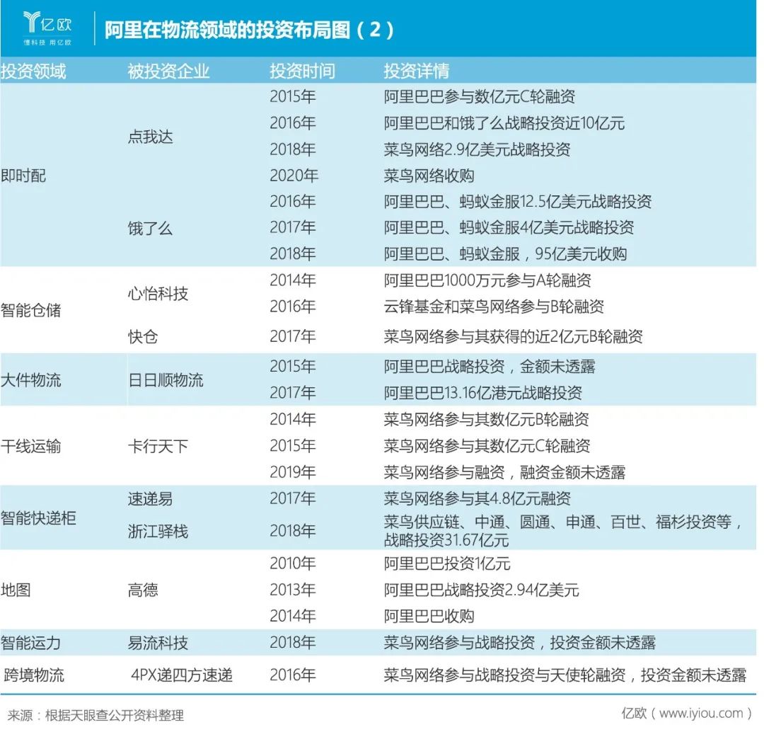 经过亿欧的梳理发现,菜鸟参与直接投资的,除了干线物流、快递柜等物流基础设施之外,大多数仍然是那些创新型的科技物流企业,对快递公司的投资大多数由阿里巴巴进行,两者之间有着清晰分野。