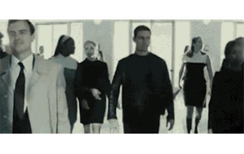 阿汤哥在街上走,视网膜被自动扫描、提取身份信息,得知他喜欢喝吉尼斯黑啤,于是便开始对他投放吉尼斯广告:“嘿,吉尼斯就在你身后!”