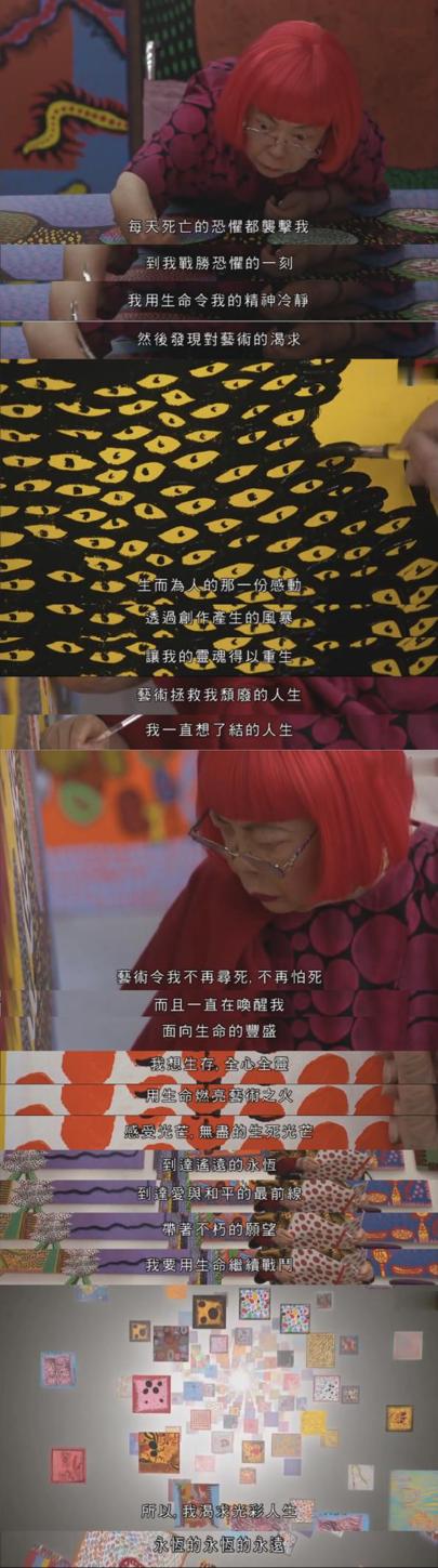 正是因为有了艺术,她实现了自己生命的超越和救赎,将自己的生命投入到创作中去,给世界留下了灵魂级的作品,自己也成为了日本国宝级的画家。Beautiful,amazing。