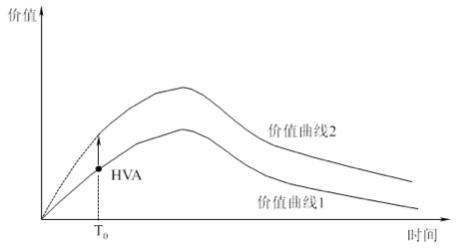 在开始使用某个产品后,用户会随着时间的推移不断贡献价值,如下图中价值曲线 1 所示,整个曲线下方的面积就是用户的 LTV。如果在时间 T0 上用户产生了一个 HVA,那么他后续的价值贡献轨迹就会发生跃迁,从价值曲线 1 跃迁到价值曲线 2,跃迁到一个用户价值贡献更高的轨迹上。这样一来,后续曲线下面的面积也就更大,即 LTV 随着价值曲线的跃迁而变大。