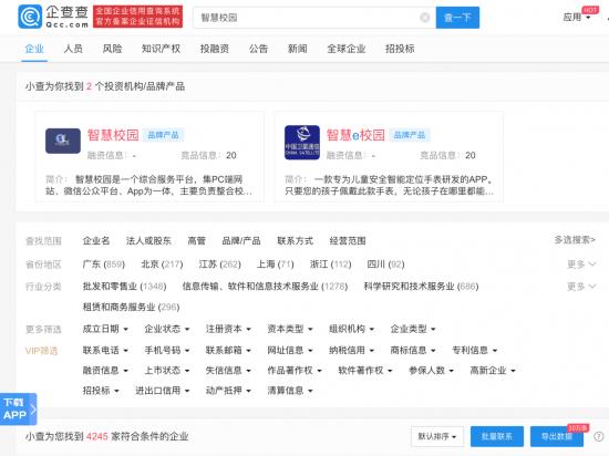 但一心想“恰饭”的企业们才不在乎呢。截止5月21日,通过企查查搜索关键词“智慧校园”,就可检索到4245家符合条件的企业,其中成立于2020年的就有181家。而这些企业中真正属于智慧校园范畴的产品少之又少,更多的还是侧重于教育系统和家校互动系统。