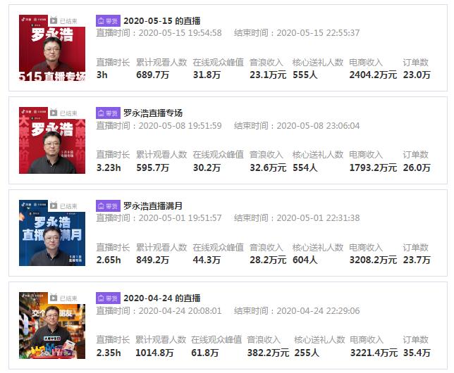 罗永浩便是抖音平台所请来的重磅援兵。从4月1日起,首次亮相抖音直播间,截至到5月21日,罗永浩已经在抖音完成了7场带货直播,整体上从观看人数和电商收入都呈现出了下滑的趋势。