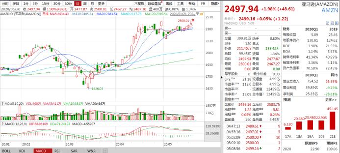 而来看巨头亚马逊,在新冠疫情的冲击之下,作为线上业务大爆发的先头兵,其表现可谓是可圈可点,除了业务上实现了高速增长,股价也创出“节节高”,今年以来亚马逊股价的累计涨幅已超过30%(周三收盘创新高)。