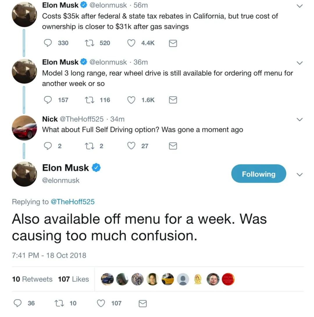 退订潮4个月后,特斯拉拿出了售价4.5万美元的“中等续航”车型,并承诺六到十个星期内交付。这个价格让不少原先标准版的客户动了心。
