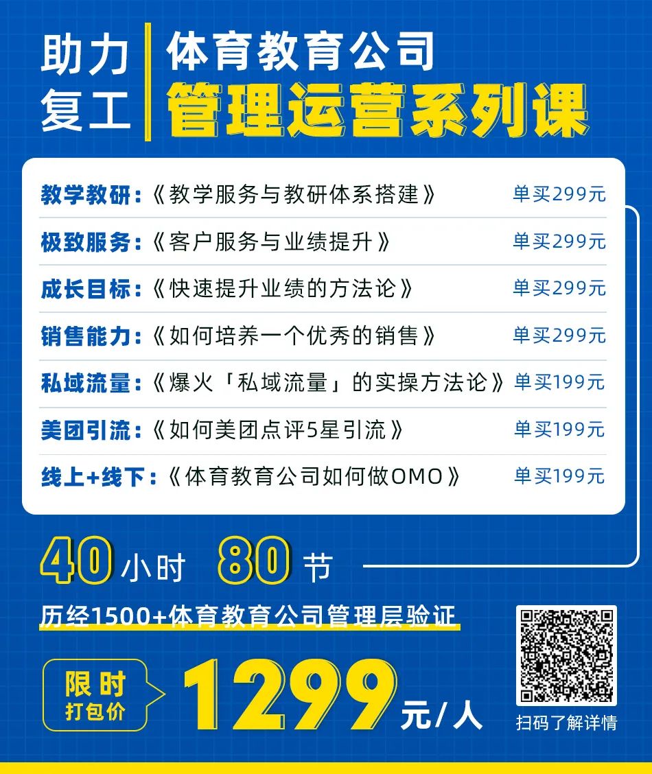 另一方面就是产品。在与懒熊体育交谈中,赵阳也提到,疫情影响了公司2020年的计划,但也给了自己思考的空间。“可能以前很多机构是以销售为主导的,疫情之后可能更多会以产品为主,要打造好课程”,他说。对于大部分机构来说,可能原本定在2020年新开门店的计划会暂时搁置,横向扩张难度不小。所以,在这个时间里,进行纵向提高是最可行的操作。之前没有仔细考虑过的课程标准化、精细化内容,疫情影响下的课程内容调整等,都是今年可以进行的优化。