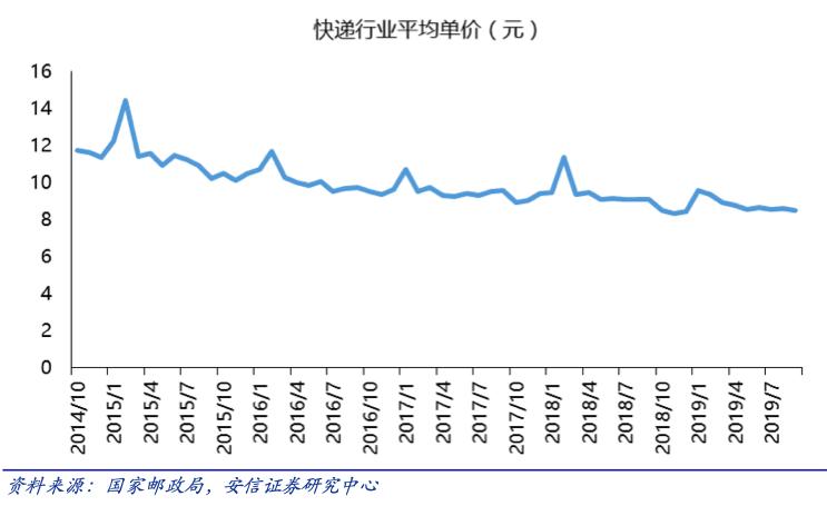 而在过去几年,快递行业的平均单价在逐年降低,一方面是设备工具的投入和数字化、精细化运营带来的整体成本降低,另一方面就是各家的价格战,导致的价格走低。