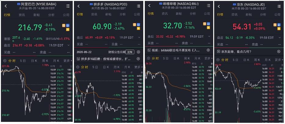 消息传出后,中概股盘中集体下跌。