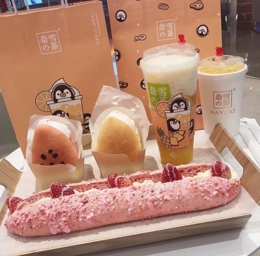相比杯子、雨伞一类的周边产品,茶+软欧包/小吃等产品,具有高频消费的属性,它和茶饮需要两条产品线操作,虽有一定操作难度,却可以相互引流。