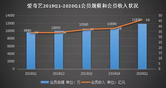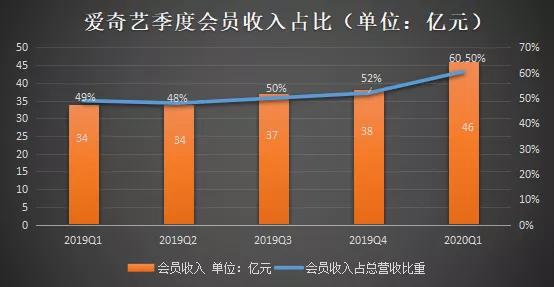 值得注意的是,爱奇艺2020年Q1的会员业务营收达到了46亿元人民币,占据总营收的60.5%,单季度会员增长了1200万人,实现了单季度增长破千万。