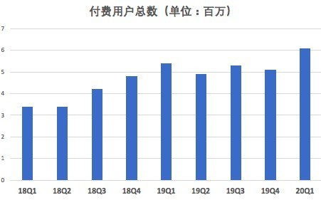 2020年一季度,虎牙付费用户达到610万,较去年同期的540万,增长了70万。