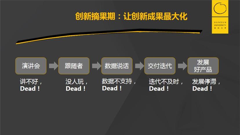 所以,一个好的项目想活下来,可能要经历一系列的过程。比如你要宣讲好,要有人跟随,然后得用运行数据说话,如果数据表现不好也会死掉。如果数据反馈了,你不快速迭代也会死掉。