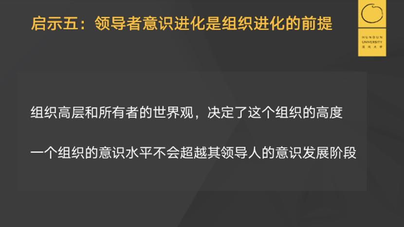 组织高层和所有者的世界观,决定了这个组织的高度。一个组织的意识水平是不可能超越领导者的意识发展阶段的。非常根源的部分,可能就是创始人和高层的意识进化。