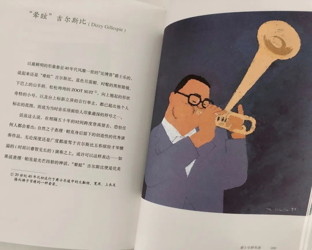 有一些书注定就是让你打开音乐同时享用的,比如这本《爵士乐群英谱》,薄薄一册一半是插画,非常可爱。有人可能记得我之前说这是我在一家威士忌酒吧点了一个村上春树主题的威士忌tasting set被店家赠送的相关读物。
