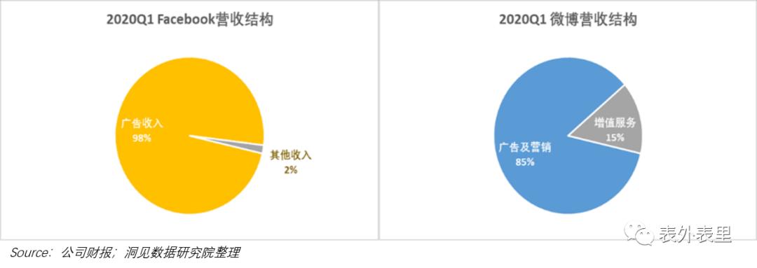 与微博相比,Facebook对广告收入的依赖程度更重,占比常年在98%以上。