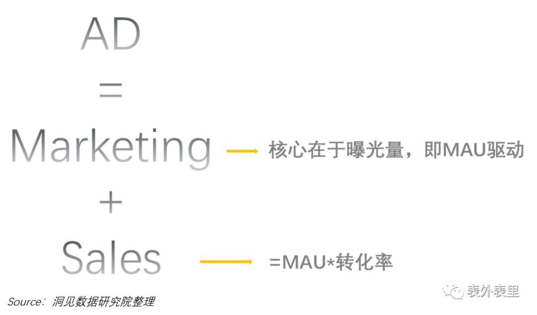 比如抖音上带货直播,其实既赚了报告品牌的Marketing的钱,也赚了用户转化的钱,典型的如罗永浩的直播带货。核心在于MAU里,有足够大的铺量(平台推荐),相对高的转化,Marketing和Sales的钱,一块赚了,而且有足够的体量。