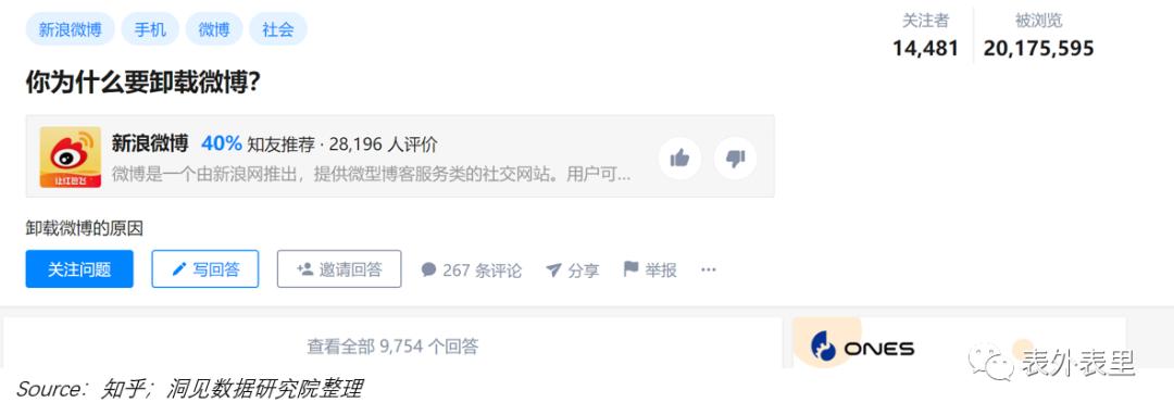 最近知乎上,一个标题为《你为什么要卸载微博》的问题被炒的火热。这个问题下,有9700多个回答,浏览量超过2千万次,甚至大于知乎的月活数。