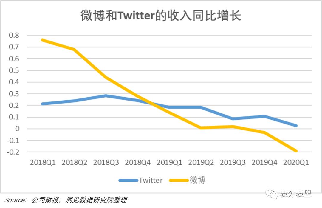 绝对金额的变化或许还不足以说明微博的“懒惰”,我们还可以通过与Twitter、Facebook相对数据的变化说明这一问题。