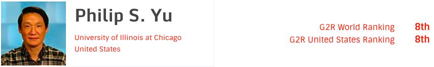 2、排名第二高的是华人学者 Philip S. Yu(俞士纶),h-index为161(2019为155,2018年为140)。他是ACM和IEEE会士,现任美国伊利诺伊大学芝加哥分校计算机科学系教授。俞士纶教授对推荐技术有深入的研究。他认为推荐就像一种分类聚类技术,深度学习也能做推荐。他曾在受访中表示,「在学术路上取得的成果跟其它任何领域一样,就是要有投入、有兴趣、有一点好胜心」。
