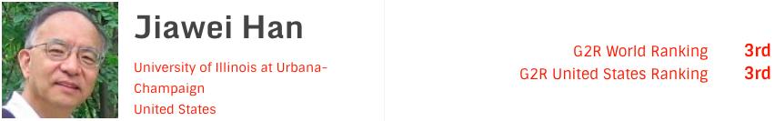 在数据挖掘领域,韩家炜教授认为要想将现有的无结构的大数据变成有用的知识,首先要做的就是将数据结构化,因为杰出贡献而被冠以「数据挖掘领头人」。他于2011年发表的「Data mining: concepts and techniques」,已经有47546次引用。