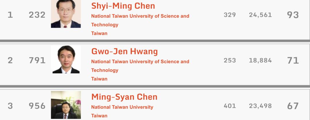 最后,介绍一下排名前1000里的香港科学家: