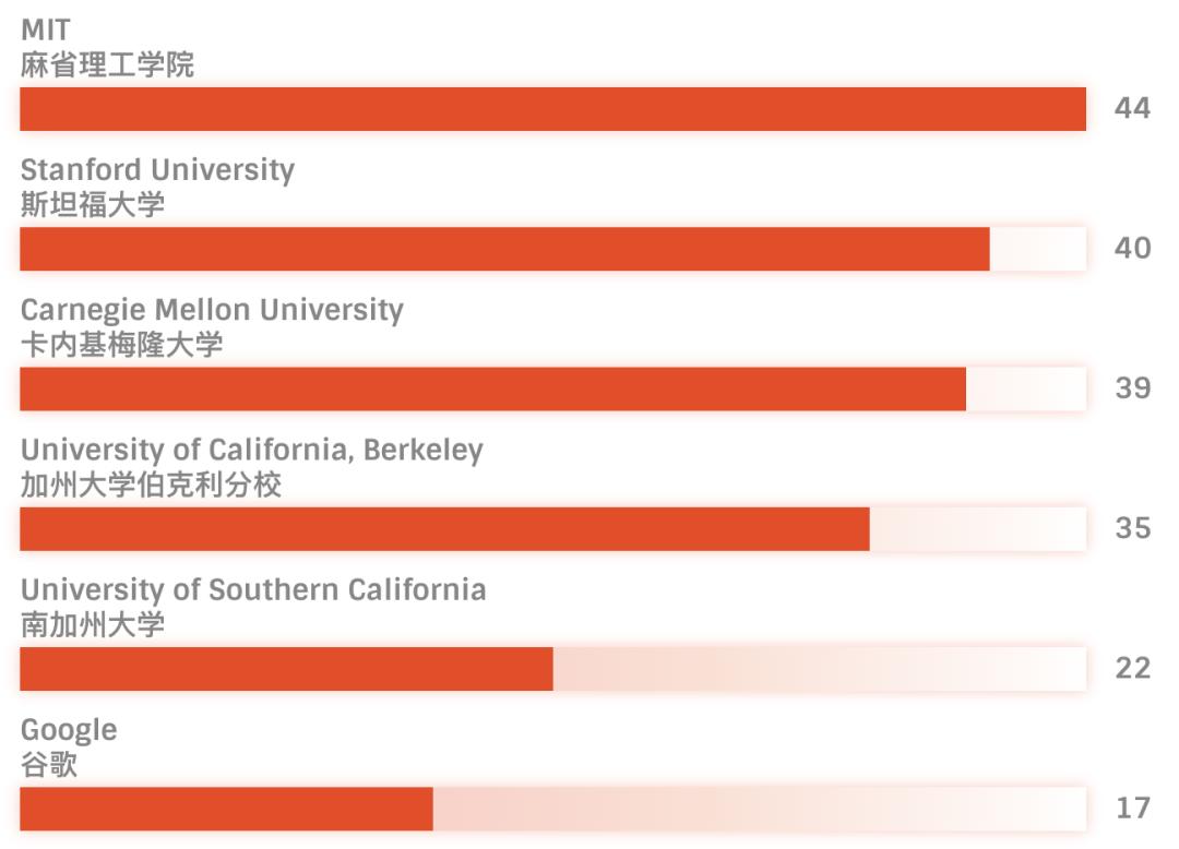 3MIT是顶尖计算机科学家最多的研究机构,共有44名科学家入选,今年是他们首次超越斯坦福大学跃居榜首。