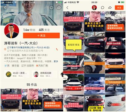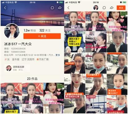 冰冰是沈阳大众4S店的一位销售经理,年后4S店虽然开门了,但是客流量却很惨淡。冰冰怒了:我这么美,我可以直播呀!从2月份开始,她就在店里用快手直播,每天坚持两场雷打不动。凭着十年的专业销售功底,半个月下来涨了1w多个粉丝。有老铁看了十天直播,就定好了要在她这里下单。