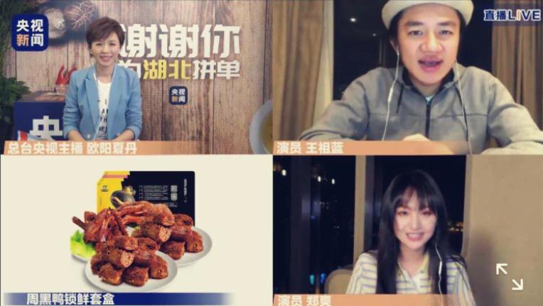 2020年4月12号,央视新闻直播间和快手直播间里,欧阳夏丹、王祖蓝、蔡明、郑爽、陈小春一起为武汉带货,短短两小时,卖出了6100万元的武汉产品。